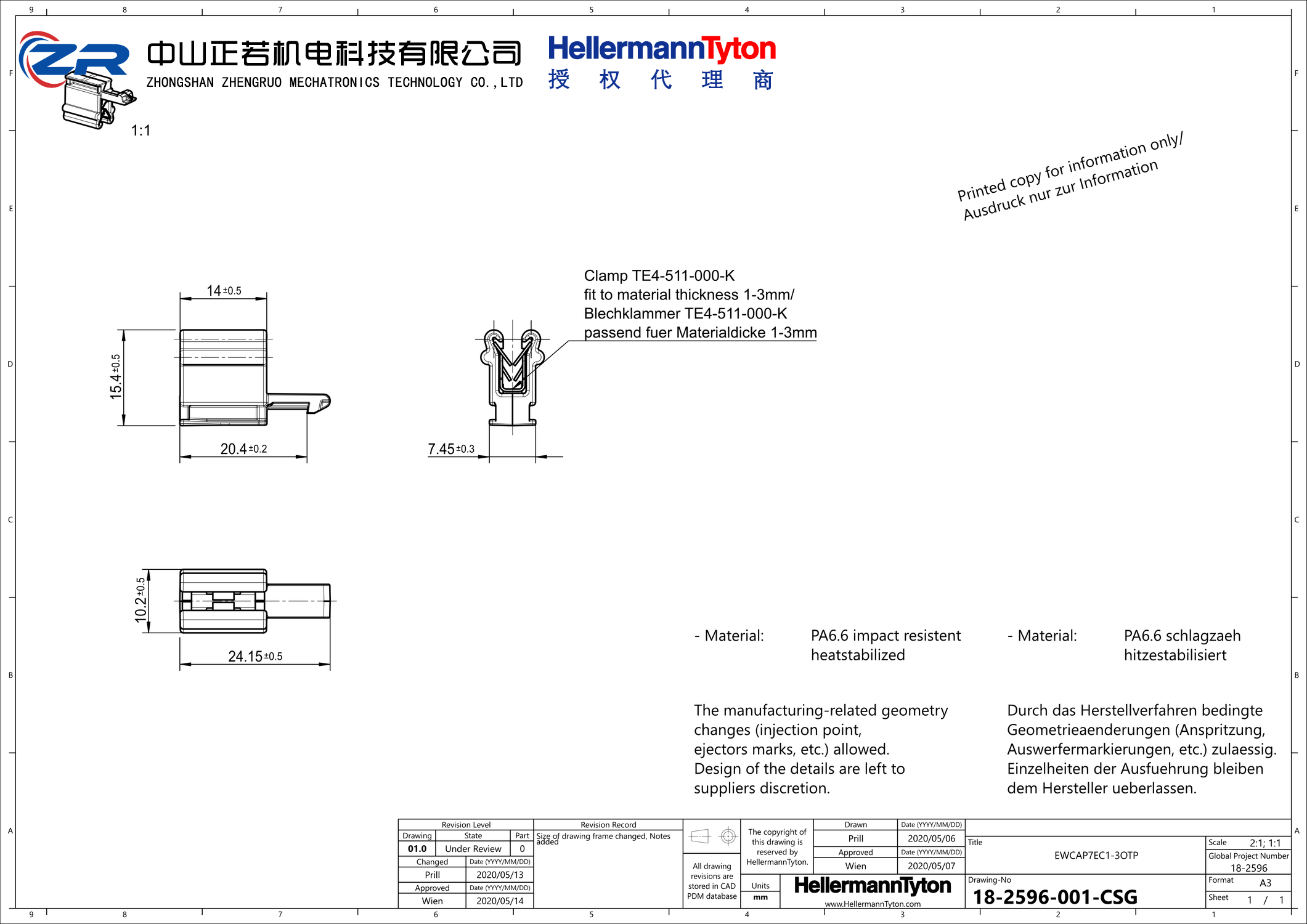 中山正若机电科技有限公司成立于2014年,是海尔曼太通Hellermanntyton一级授权代理商。产品包括海尔曼太通电缆扎带、汽车扎带、连接器卡扣、不锈钢扎带、热缩套管、编织网管、无卤线槽、扎带枪等。
