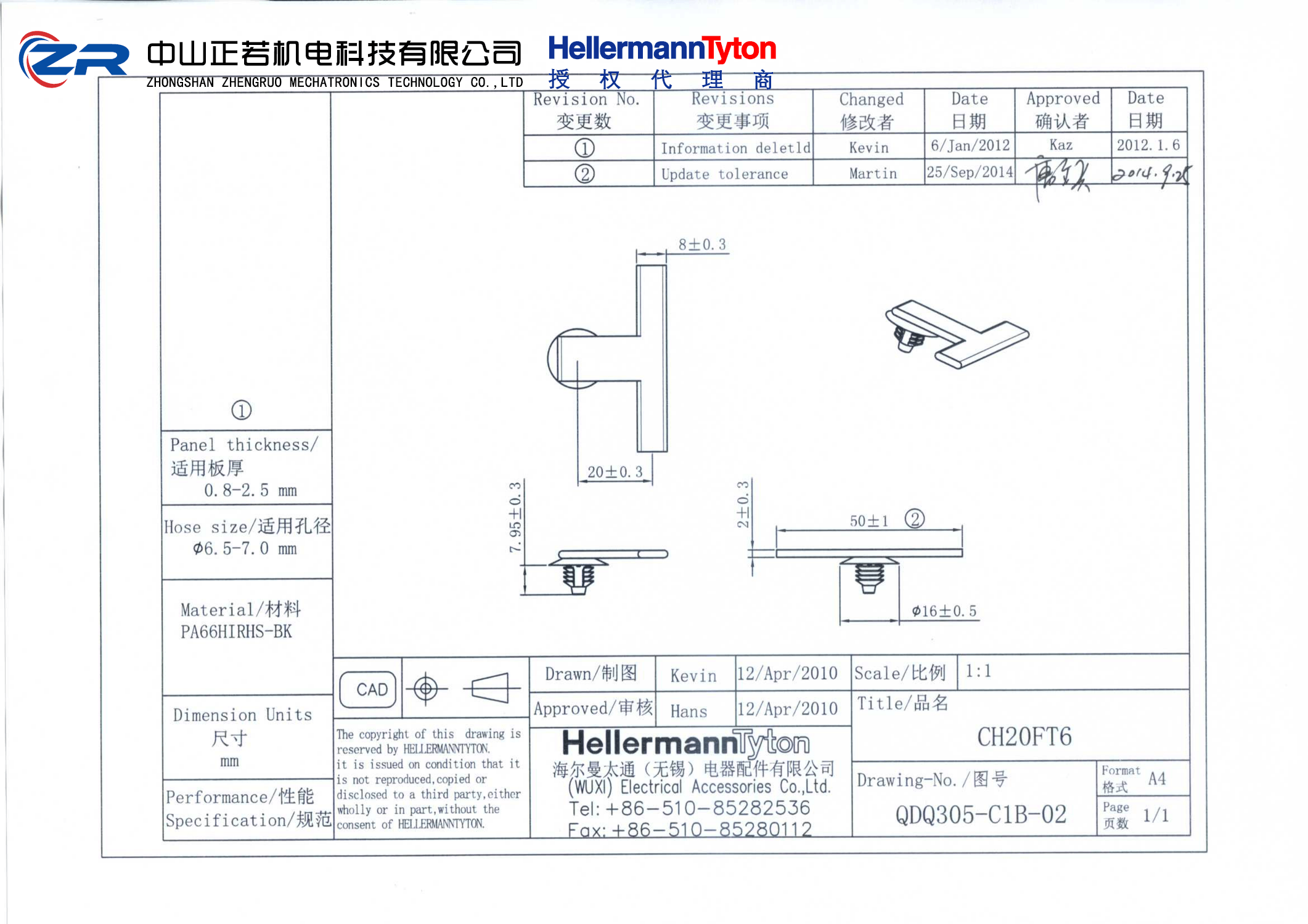 中山正若机电科技有限公司成立于2014年,是海尔曼太通Hellermanntyton一级授权代理商。产品包括海尔曼太通电缆扎带、汽车扎带、连接器卡扣、不锈钢扎带、热缩套管、编织网管、无卤线槽、扎带枪等。