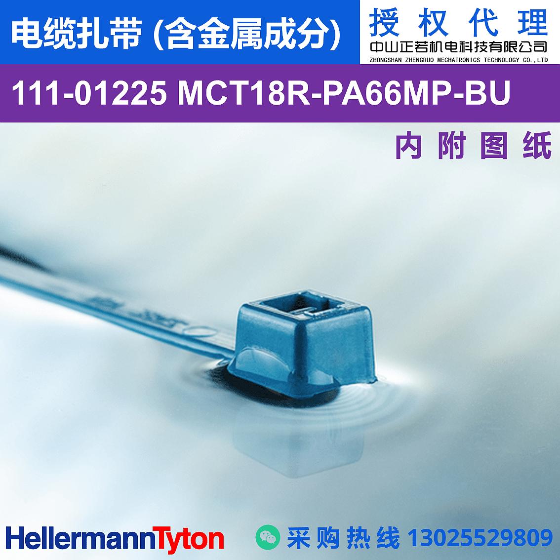 111-01225 MCT18R-PA66MP-BU 是一种含金属成分的T系列电缆扎带,主要是为食品和制药工业设计,具备易于检测的特性。这些扎带在生产过程中加入了微量金属成分,使得任何可能脱落的扎带碎片都能被标准的金属检测设备快速识别,有效提升了生产线的安全性。这项功能使得扎带特别适合用于对生产环境清洁和安全有高要求的行业,确保电缆管理既高效又符合行业规范。