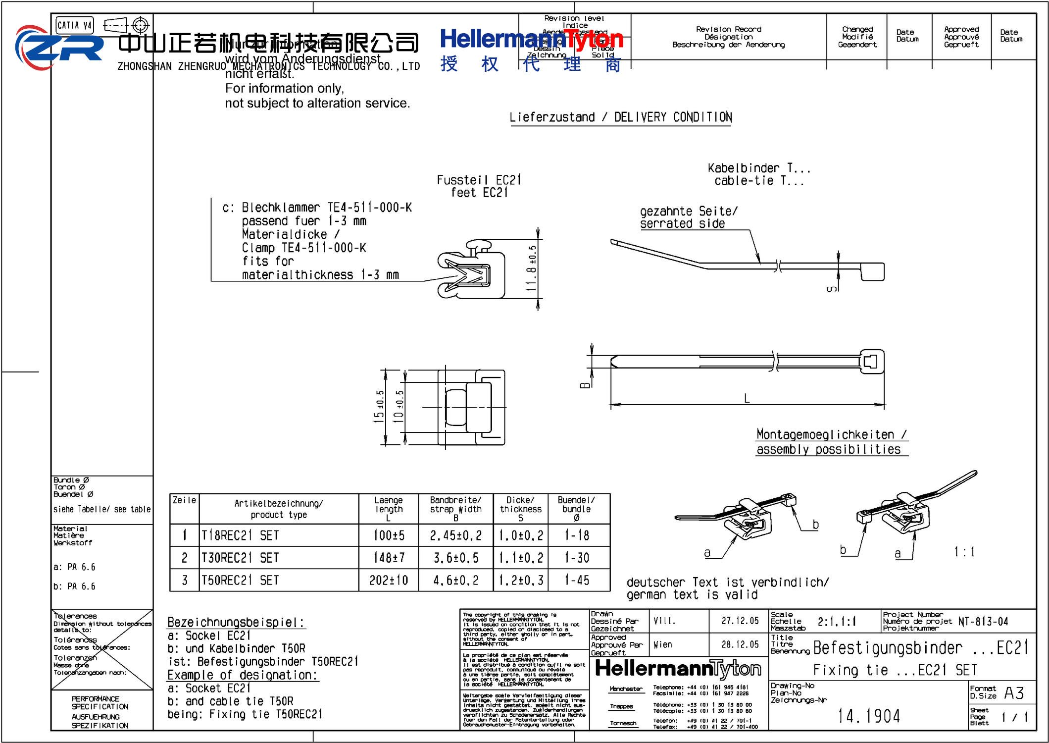 中山正若机电科技有限公司成立于2014年,是海尔曼太通Hellermanntyton一级授权代理商。产品包括海尔曼太通电缆扎带、汽车扎带、连接器卡扣、不锈钢扎带、热缩套管、编织网管、无卤线槽、扎带枪等。