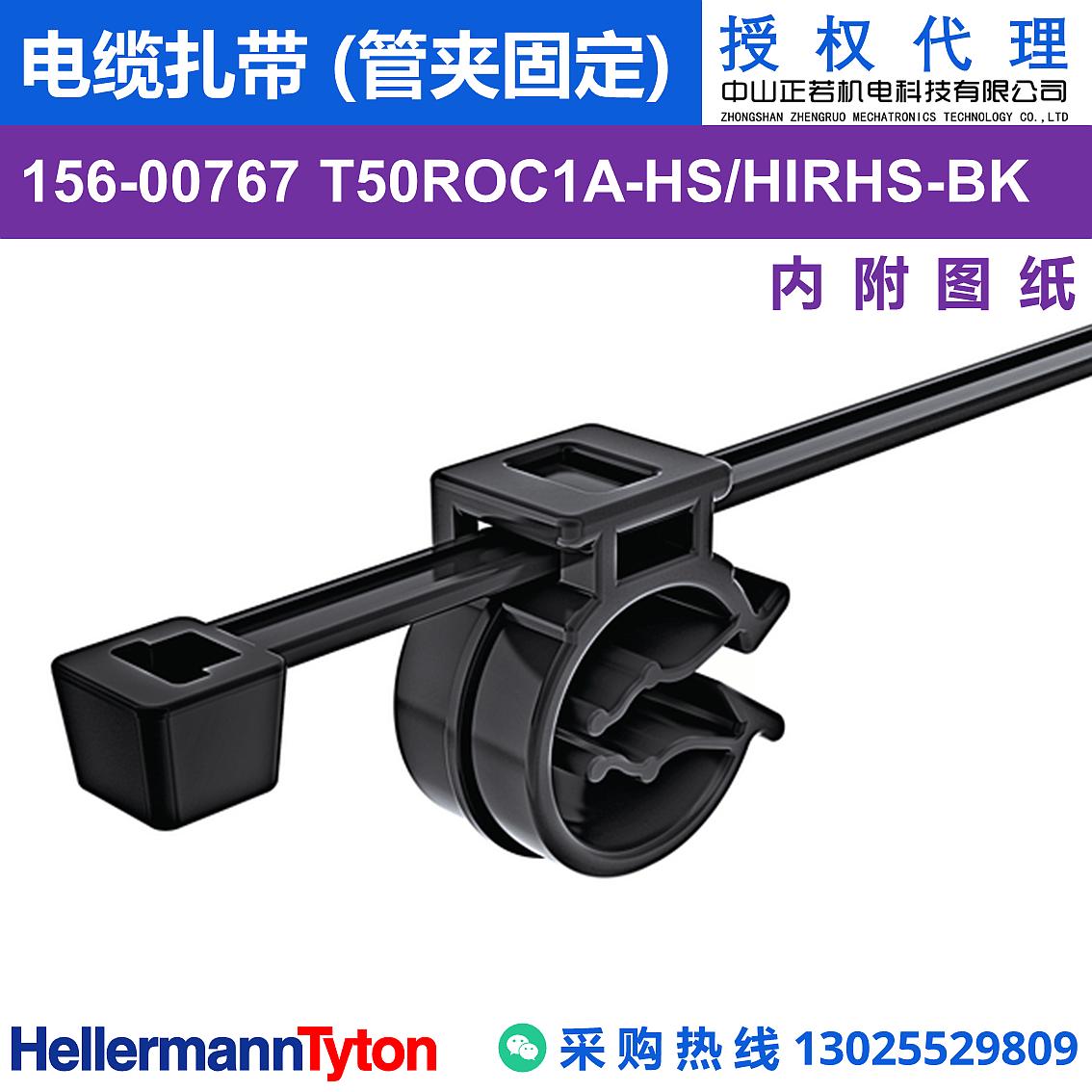 156-00767 T50ROC1A-PA66HS/PA66HIRHS-BK 是一种带管夹固定座的2件组合式扎带,可以将不同尺寸、类型的管道或者电缆进行有效组合固定,确保线束在振动或运行中得到良好的保护以及固定。