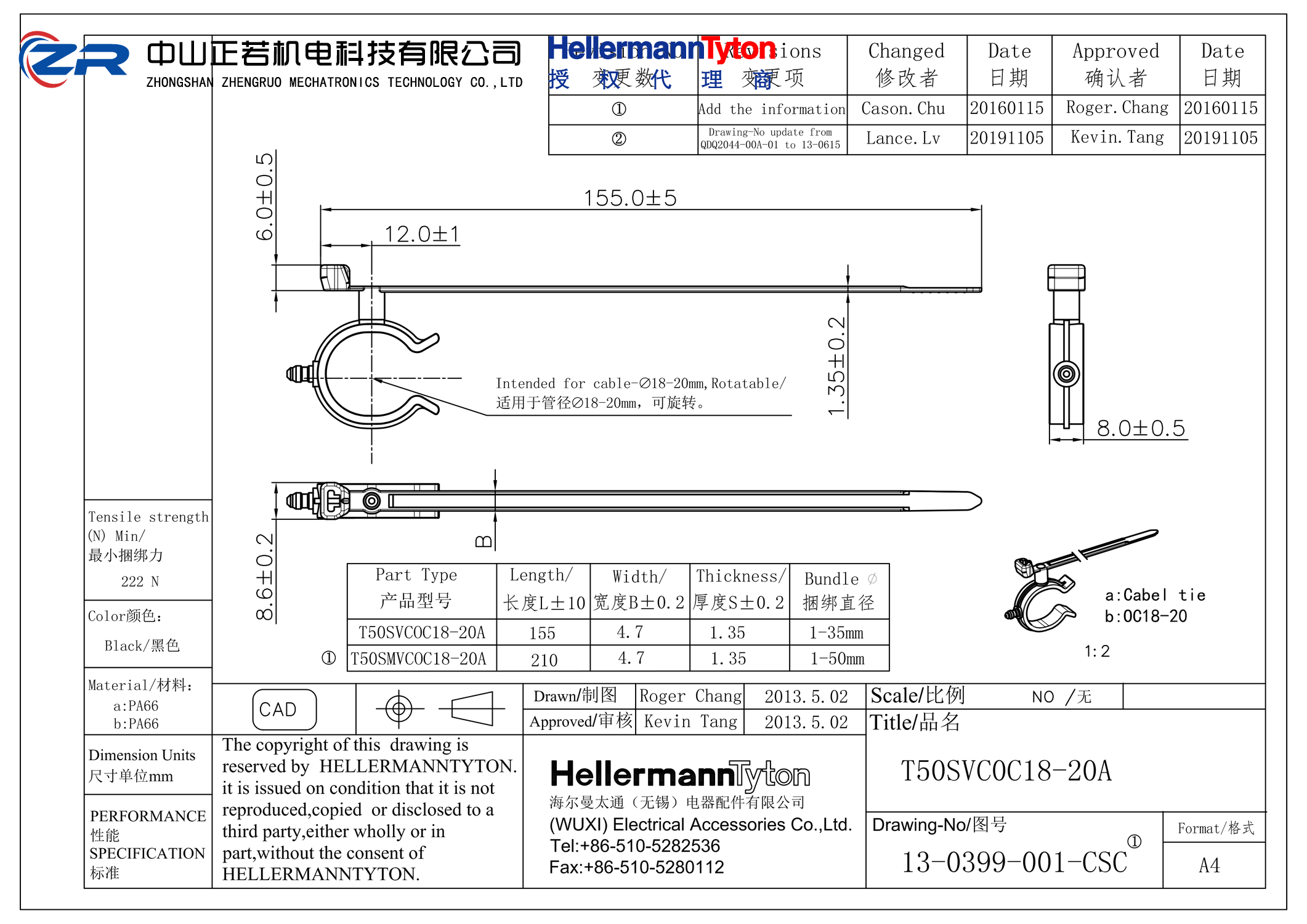 中山正若机电科技有限公司成立于2014年,是海尔曼太通Hellermanntyton一级授权代理商。产品包括海尔曼太通电缆扎带、汽车扎带、连接器卡扣、不锈钢扎带、热缩套管、编织网管、无卤线槽、扎带枪等。