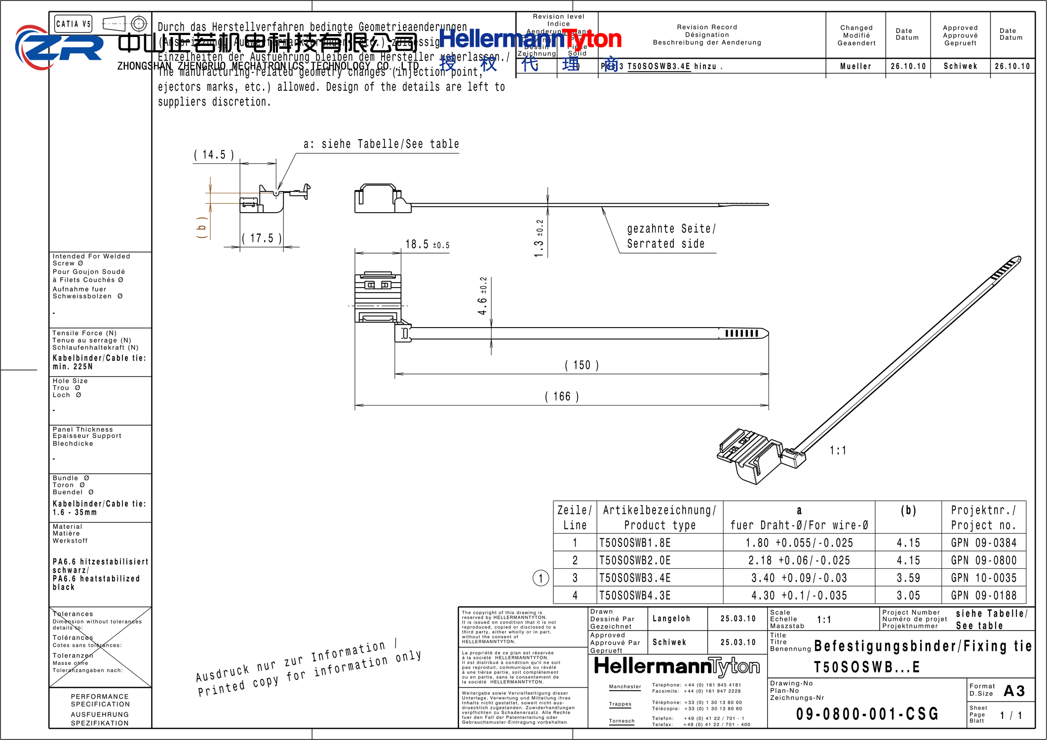 中山正若机电科技有限公司成立于2014年,是海尔曼太通Hellermanntyton一级授权代理商。产品包括海尔曼太通电缆扎带、汽车扎带、连接器卡扣、不锈钢扎带、热缩套管、编织网管、无卤线槽、扎带枪等。