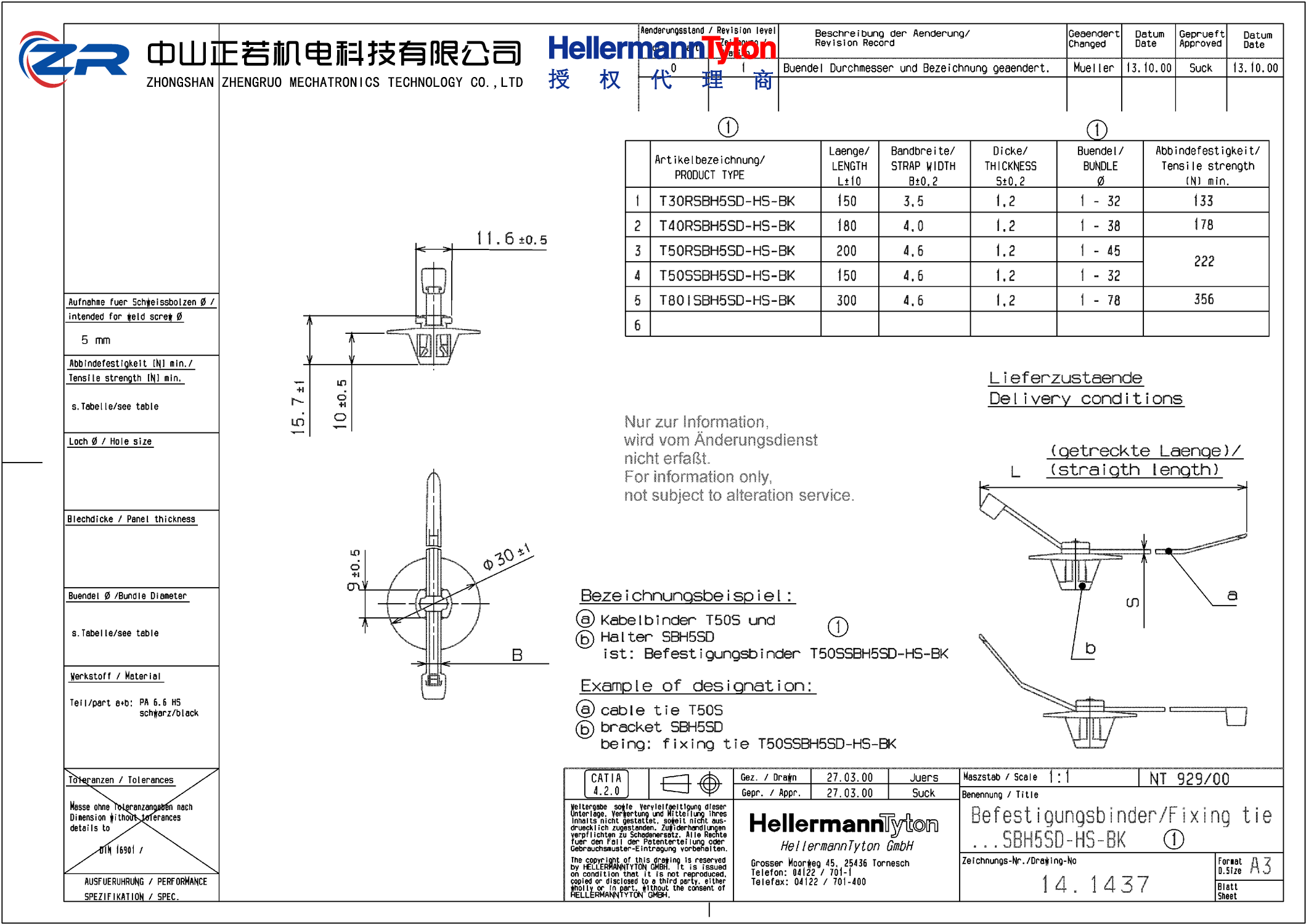 中山正若机电科技有限公司成立于2014年,是海尔曼太通Hellermanntyton一级授权代理商。产品包括海尔曼太通电缆扎带、汽车扎带、连接器卡扣、不锈钢扎带、热缩套管、编织网管、无卤线槽、扎带枪等。