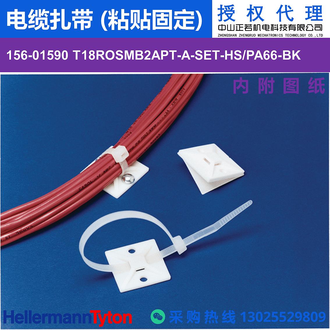 156-01590 T18ROSMB2APT-A-SET-PA66HS/PA66-BK 是一种带粘贴固定座的2件组合式扎带,其使用的MB 系列固定座为方形设计,在电气柜、轨道交通、航空航天、汽车和农业机械等领域相当常见。这种优质的自粘背胶材料可在塑料、金属、清漆或油漆等表面上很好地粘接,其提供了一种灵活的电缆管理解决方案,适合于需要在光滑表面上固定电缆的应用,而无需钻孔或其他复杂的安装步骤。